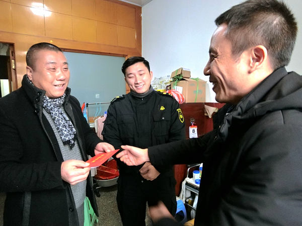 2月9日和11日,在狗年春节即将来临之际,受温州公司领导班子的委托,公司纪委书记、副总经理林君杰,副总经理余建东、苏苗杰等分别走进市区、平阳、乐清等各守押大队及其困难员工家庭,亲切看望并慰问了一线和困难员工,向他们致以新春的祝福,并送上了慰问品。