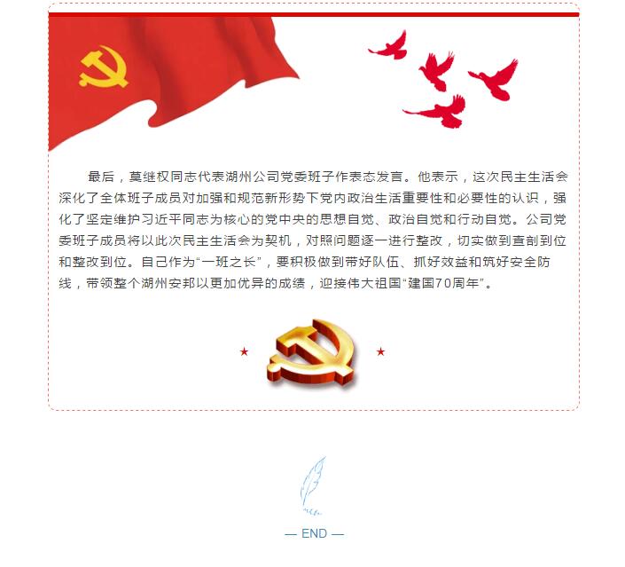 湖州公司党委召开2018年度民主生活会