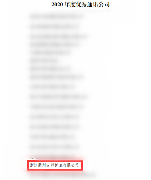 衢州安邦护卫喜获省级“2020年度优秀通讯单位”