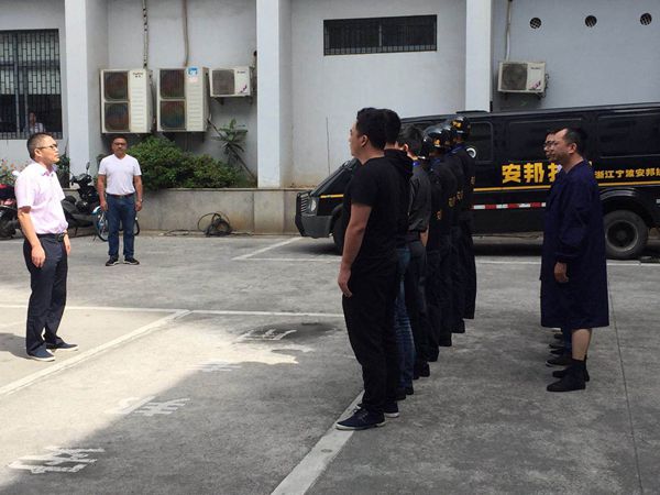 6月8日下午,象山大队农行中队城东线押运车组驾驶运钞车到达支行金库卸款箱交接时,突然冲出两名犯罪分子手持枪械利器袭击押运员,预谋实施抢劫……