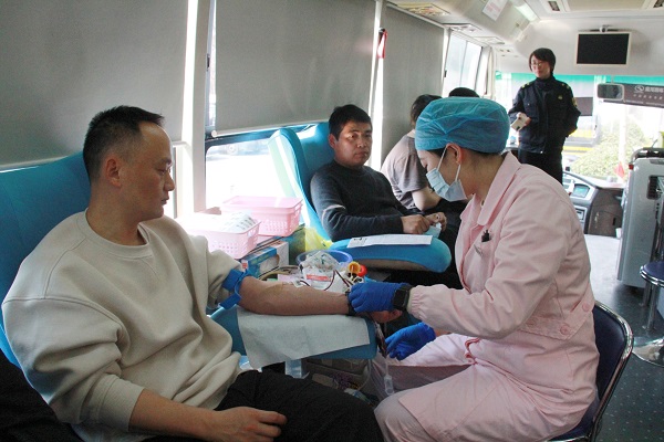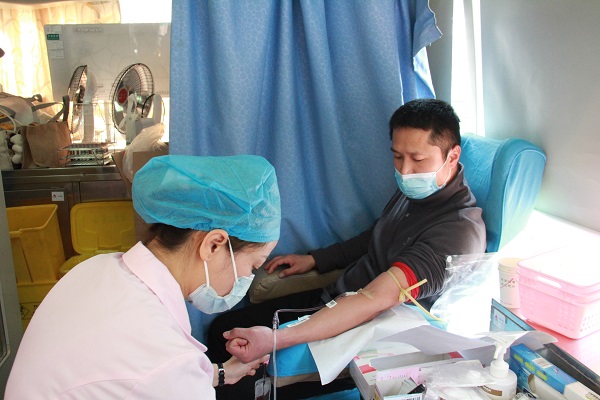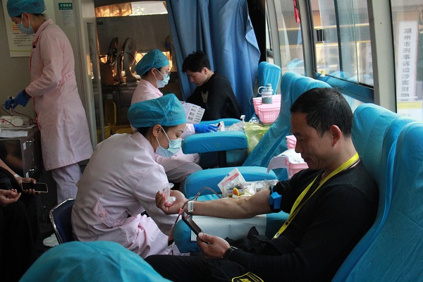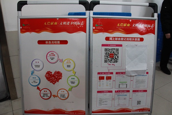献血现场,献血者通过扫码登记、测量血压、采血验血、献血等流程有条不紊地进行着。