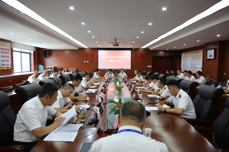 为深入学习贯彻习近平总书记“7.26”重要讲话精神和浙江省公安厅《关于贯彻<保安守护押运公司管理规定>进一步规范守护押运工作的通知》精神,浙江丽水安邦护卫有限公司于8月31日组织召开为期一天的专题学习会议。公司党委班子成员、子公司相关负责人、总经理助理、公司副股以上干部及部门全体工作人员参加专题学习会。会议由公司党委委员郑洋主持。