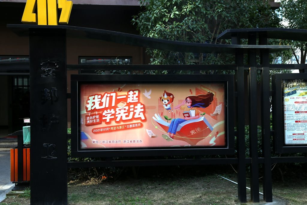 公司采用多种方式开展“宪法与浙江”主题宣传月活动,广泛开展宣贯落实工作;在办公楼大厅摆放法治宣传展架,宣传栏开设主题专栏,电子屏播放主题宣传视频等;重点宣传习近平法治思想、党的十九届六中全会精神、宪法。
