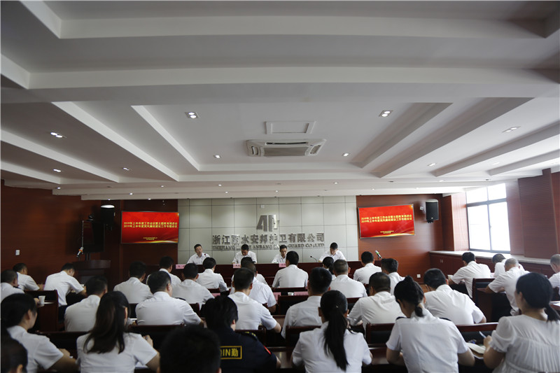 为传达浙江安邦护卫集团公司半年度工作会议精神,总结丽水安邦护卫公司上半年工作,部署下半年任务,更好地推进公司战略实施,进一步推动“不忘初心、牢记使命”主题教育工作开展,8月16日,丽水安邦护卫公司召开2019年上半年度工作会议暨主题教育推进会,公司党委班子成员,总经理助理,各部门、大队、子公司副职以上干部,部门全体员工参会,会议由党委委员陈彬主持。