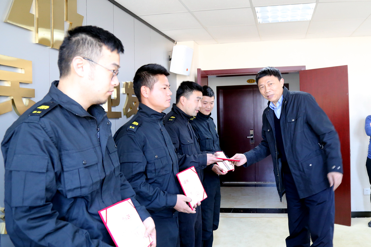 最后,邵会长向获得温州市第二届保安员职业技能竞赛个人获奖的杜昉亮等4名员工颁发荣誉证书和相关职业资格证书。