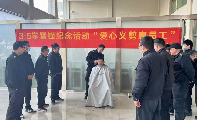 慈溪分公司党支部开展“爱心义剪惠员工”公益理发志愿服务活动,为早出晚归的队员们提供理发方便。