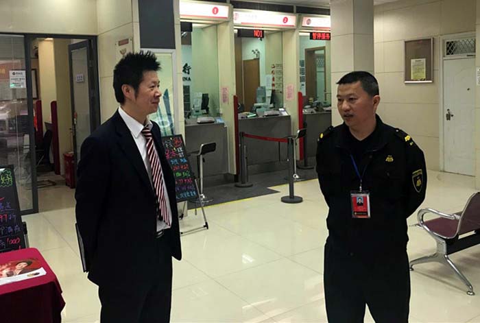 平湖队联合中队7号线路(全塘线)施行线路优化已有两个多月,为了解线路优化后守押业务开展情况及与银行的协作配合情况,11月10日,县市大队平湖队队长俞伟民与中国银行平湖支行保卫科长眭一鸣对该线进行了跟车检查并对银行网点周边环境进行了排摸。