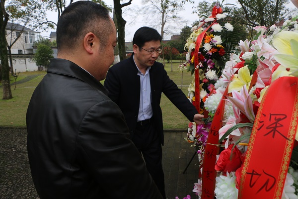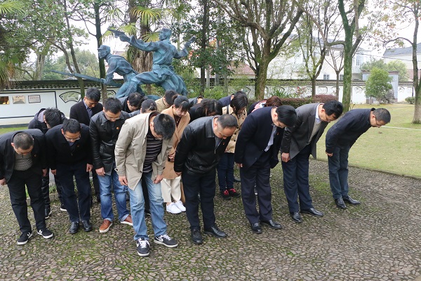 在粟裕将军骨灰安放纪念碑前,全体人员听取了讲解员讲述粟裕同志在苏浙军区时的烽火岁月。集团党委领导向粟裕将军纪念碑进献花篮,全体人员集体向纪念碑三鞠躬。