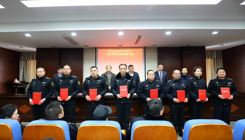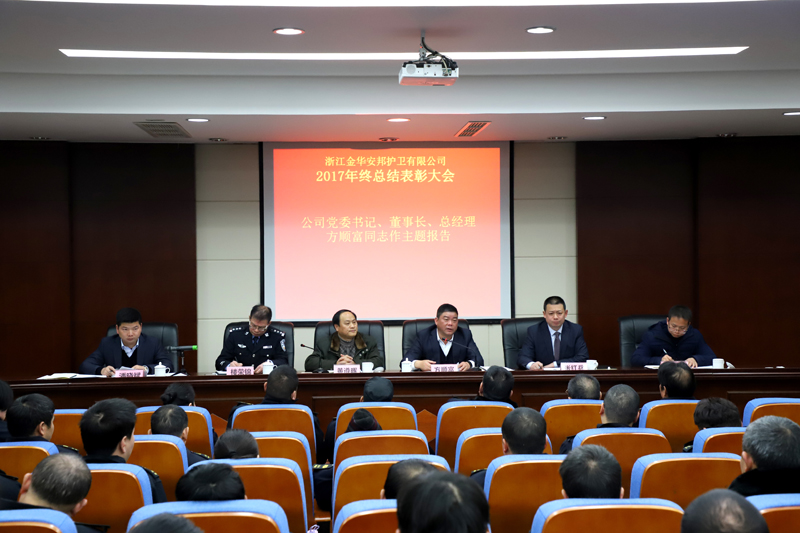2月1日,金华安邦公司2017年度总结表彰大会在公司六楼多功能会议厅召开,总结一年来的工作成绩和不足,安排部署2018年主要工作。市国资委党委委员、副主任黄遵晖,公司党委书记、董事长、总经理方顺富,市公安局经文保支队副支队长楼荣锦,公司党委委员、副总经理张红兵、潘晓斌,专职监事徐林伟,公司各部门、大(中)队主要负责人,本部全体人员以及优秀党员、先进个人等参加会议。会议由张红兵主持。