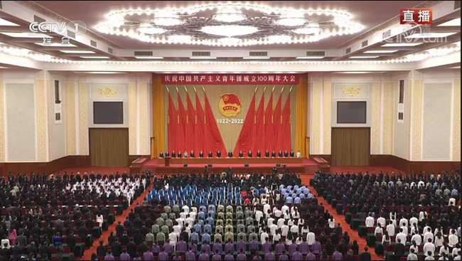 习近平总书记在大会中指出,一百年来,中国共青团始终与党同心、跟党奋斗,团结带领广大团员青年把忠诚书写在党和人民事业中。青春孕育无限希望,青年创造美好明天。一个民族只有寄望青春、永葆青春,才能兴旺发达。