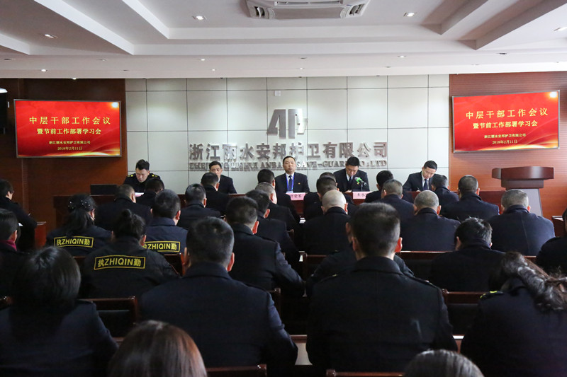 根据省集团公司的工作部署,董事长叶荣军就2018年丽水安邦公司工作提出3点要求:一、在党建工作上,以支部为单位,抓好组织建设、抓好教育培训工作,按照“一企一品、一个支部一特色”的总要求,打造基层党建品牌。二、抓好春节前后的安全生产工作,贯彻落实省公司2018年度重点工作,并制定安全生产责任书。三、加强党风廉政建设,签订党风廉政责任书。四、业务工作上,紧紧围绕“一个确保、五个推进”开展,通过“安全第一、优质服务、坚决完成任务”的企业文化理念,确保2018年业务工作稳重有进,有亮点、有突破。