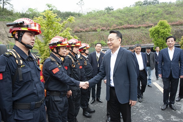湖州市市长王纲莅临浙江湖州安邦护卫有限公司视察应急救援物资储备及社会化应急救援队伍建设