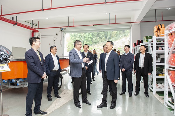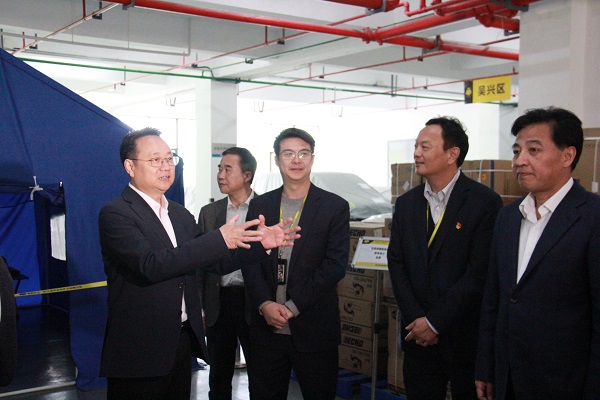 4月12日下午,湖州市委副书记、市长王纲,市委常委、常务副市长杨六顺等领导一行,在南太湖新区党工委副书记、管委会主任吴智勇、南太湖新区党工委副书记、管委会副主任姚星、市应急管理局局长朱建祥的陪同下,到浙江湖州安邦护卫有限公司视察应急救援物资储备及社会化应急救援队伍建设情况。