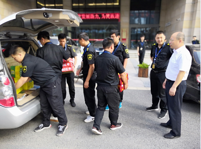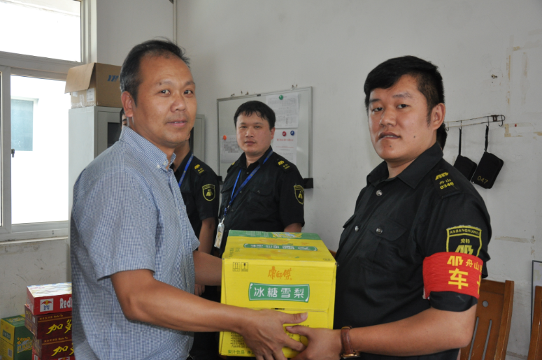 7月31日,公司领导班子分组带领相关部门同志深入基层一线各个中队,并为他们送去了风油精、藿香正气水、仁丹、十滴水等防暑降温药品和饮品,给在高温酷暑里辛勤工作的员工们送上一份清凉。