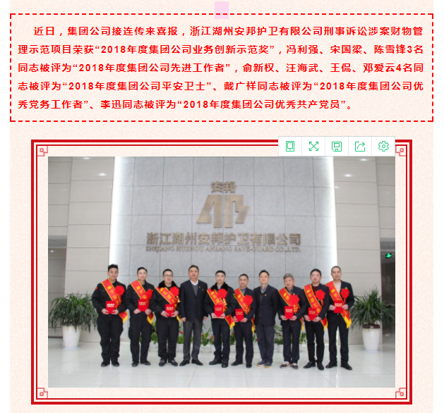 喜报频传:湖州公司荣获集团公司2018年度业务创新示范奖等多项荣誉