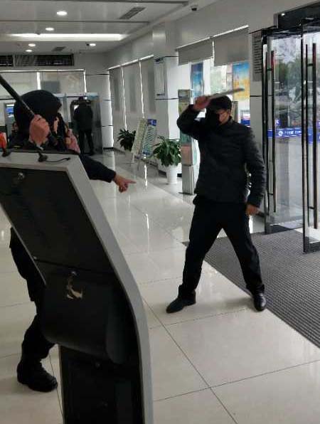 公司与治安大队、行方开展防抢、反抢应急预案联合演练