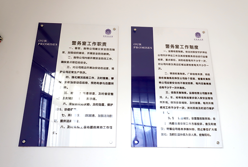 安邦公司警务室,是根据公安部《保安守护押运公司管理规定》规定,在市公安局派驻警务联络官的基础上,辖区公安机关为进一步加强重点单位安全防范和单位内部管理而设立的。主要职能是采取民警定期巡逻、治安巡防重点巡查、保安驻守执勤等方式,对公司内部及周边进行全天候巡逻防范。并制定、完善常态化安全管理机制,提高警务室运行效能,确保每天有巡查,每月有检查,每季有联合检查,年度有考核。为进一步提升公司及周边安全管理水平打下坚实基础。