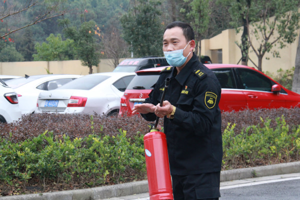 当消防广播响起,公司全体人员沿着指定紧急疏散通道迅速逃生至安全地点,各演练组根据基地消防应急演练实施方案有序地进行人员疏散和紧急救援。随后,在公司行政大楼南侧停车场进行模拟火灾灭火器使用现场教学。