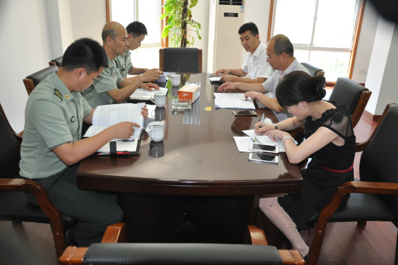 舟山警备区后勤保障处长傅志刚一行到舟山安邦护卫公司考察交流