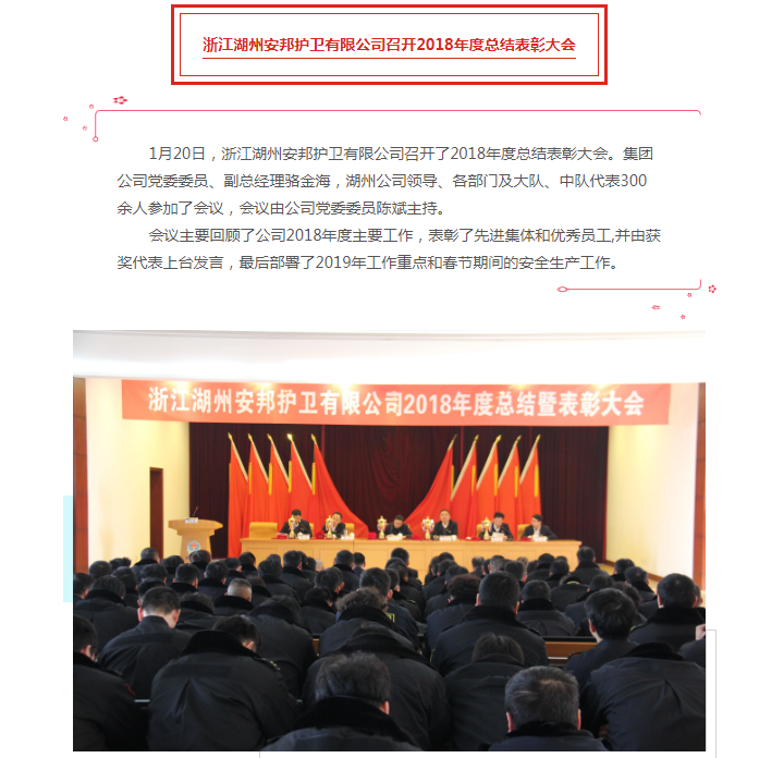浙江湖州安邦护卫有限公司召开2018年度总结表彰大会