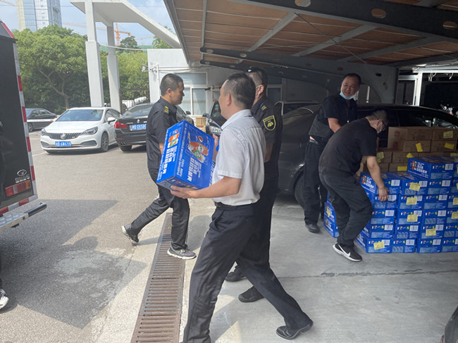 罗国明代表行方表示非常欣慰,感谢公司一直以来为行方提供的专业、优质的服务。尤其在当下,高温酷暑难耐,但队员们毫无怨言,依然坚守在守押岗位上,并没有因为外部条件恶劣而降低服务质量,为银行开展各项业务提供了有力保障。而为队员送上慰问,便是中行慈溪支行的一份心意。