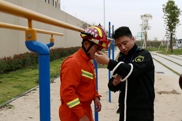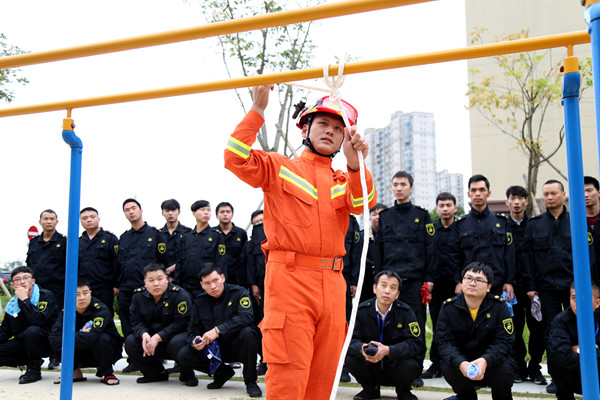 此次演练活动主要是以模拟警备楼着火进行应急逃生而展开的,教官从如何正确掌握火灾现场逃生等方面进行详细讲解,展示了一些常备逃生绳索使用方法,同时告诉大家在火灾发生时,不要慌张,要学会科学自救和逃生。在演习指示下达后,在现场指挥组人员引导下,参演人员反应迅速,现场处置过程有条不紊。此外,队员们还演练了手提灭火器使用及水带连接、如何盘卷水带等灭火处置技能,教官当场对做法不对或掌握不牢的参训队员进行指正,加深了参训人员对消防技能的理解与掌握。