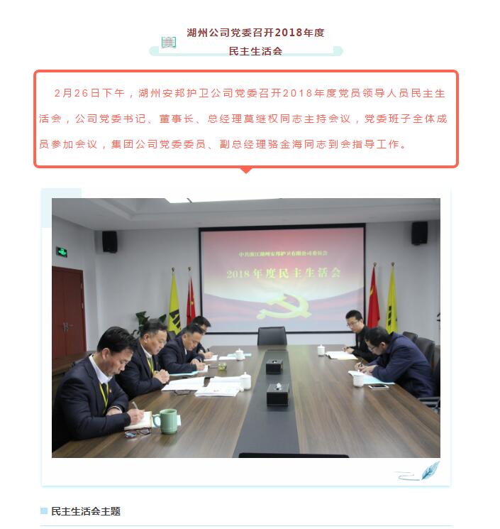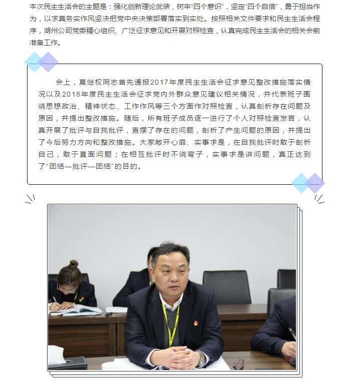 湖州公司党委召开2018年度民主生活会