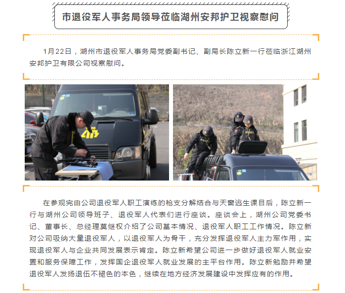 市退役军人事务局领导莅临湖州安邦护卫视察慰问