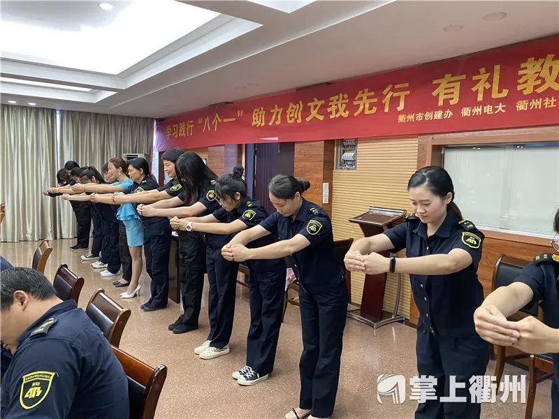 今年是我市创建全国文明城市的决胜之年,市创建办联合市电大聚焦礼让行人、不乱扔烟头、不随地吐痰、使用公筷公勺、见面行作揖礼等文明行为,特别策划推出了“学习践行‘八个一’助力创文我先行”有礼教育培训。衢州电大社区教育培训处负责人刘向龙介绍说,本次有礼教育培训是我市首次面向建筑工地工人、门卫保安、快递外卖人员、家政服务人员、来衢务工人员、城郊农民等基层一线群体,开展多样化、立体式的‘八个一’有礼宣传教育活动,并计划在8月5日前完成百场培训,进一步督促广大市民养成文明习惯,让有礼之城更加名副其实。