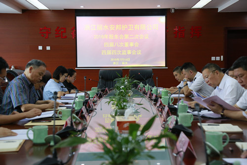 7月16日,浙江丽水安邦护卫有限公司召开2018年第一次股东会、第二次股东会、第四届董事会第八次会议、第四届监事会第四次会议。公司股东代表、董事、监事出席了会议,市公安局党委委员、副局长诸葛俭、公司领导及相关部门负责人列席了会议。会议由党委书记、董事长、总经理叶荣军主持。