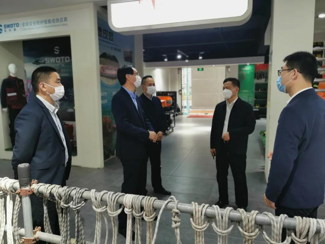 4月27日下午,童林华、马洪庆、王勇一行前往咸亨国际科技股份有限公司旗下的赛孚城国际应急装备中心考察调研,咸亨国际董事长王来兴陪同调研。