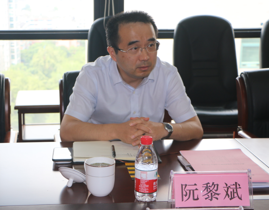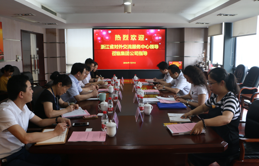 7月9日,省外侨办护照签证处处长、省对外交流服务中心主任阮黎斌一行4人到集团公司调研指导外事工作。集团公司党委书记、董事长吴高峻,党委副书记、董事余兴才热情接待来宾。
