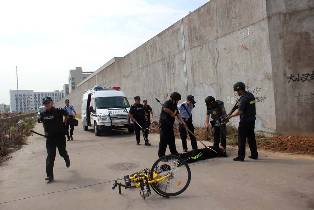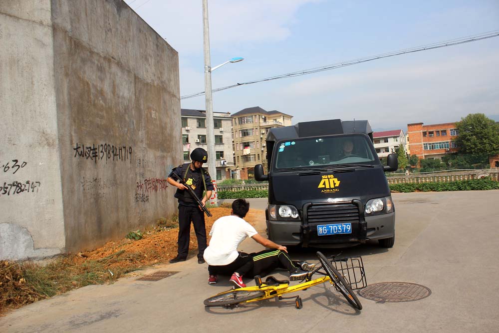此次演练模拟安邦运钞车执行任务途中,遭遇歹徒撞车截停并试图实施抢劫,公司队员勇敢上前与持刀歹徒展开搏斗,最后被制服并移交给前来处警的民警。