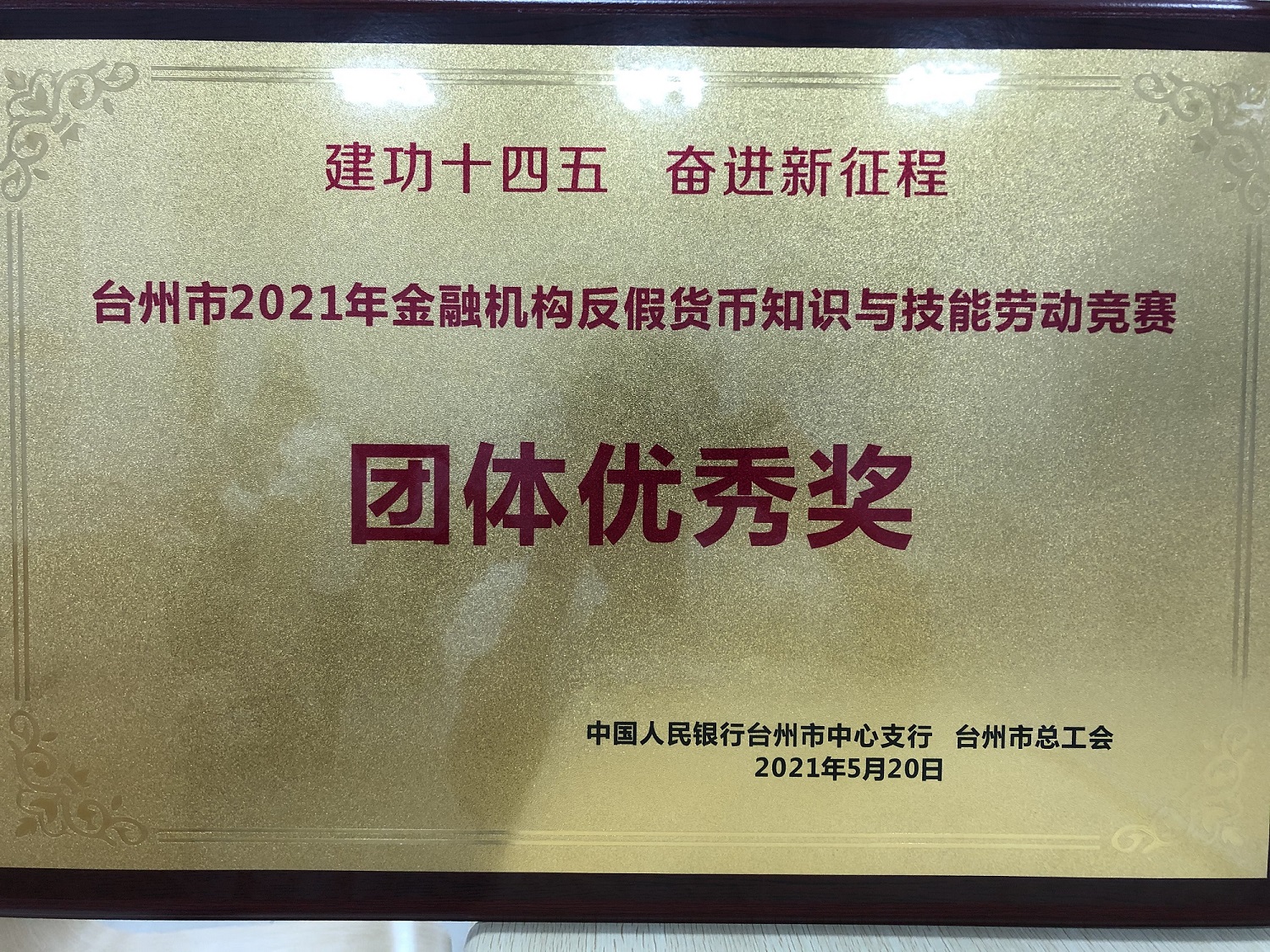 2021年5月20日,台州安邦护卫喜获2021年台州市金融机构反假货币知识与技能劳动竞赛团体优秀奖,清分员梁璐璐获个人奖第十名。