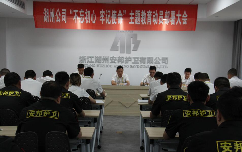 6月25日,湖州安邦护卫公司党委组织召开“不忘初心、牢记使命”主题教育动员部署大会。本次会议,公司党委深入学习传达了中央有关决策部署和集团公司相关文件精神,全面动员部署湖州公司“不忘初心、牢记使命”主题教育工作。
