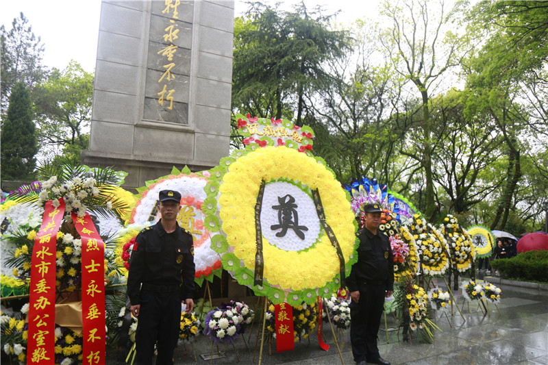 蒙蒙细雨中,庄严肃穆的革命烈士纪念碑巍然矗立。下午2时30分,活动在《义勇军进行曲》的激昂旋律中正式开始。