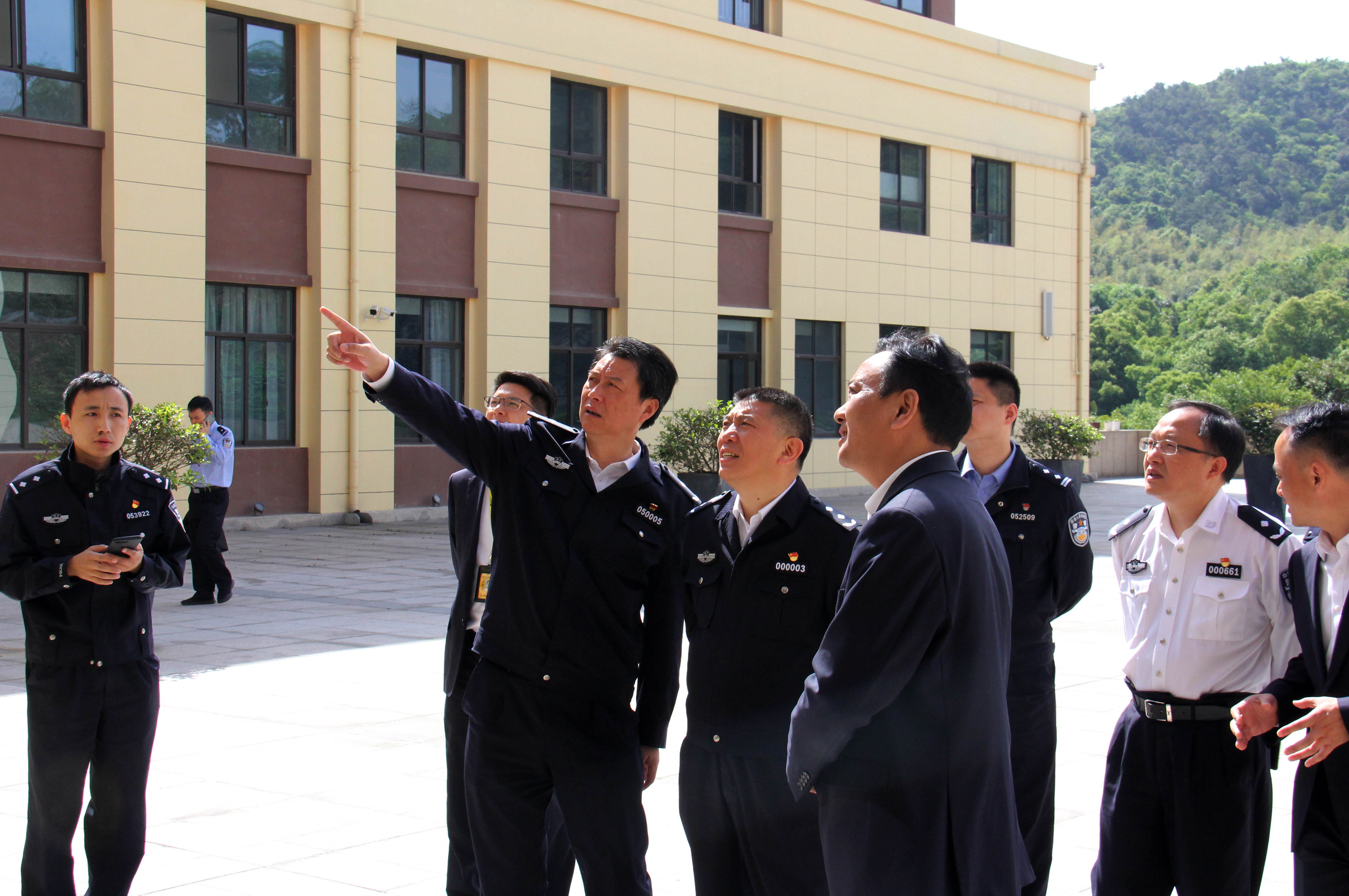 5月7日,浙江省公安厅党委委员、副厅长金伯中,在省厅和湖州市公安局相关领导及部门的陪同下,莅临湖州安邦护卫公司调研视察。