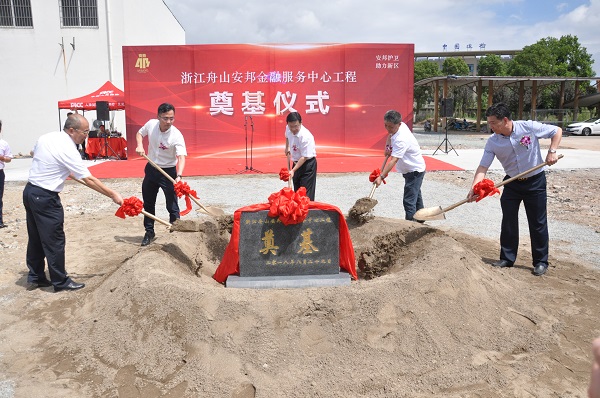 8月29日上午,浙江舟山安邦金融服务中心工程开工奠基仪式在舟山市经济开发区新港工业园区举行,集团公司党委书记、董事长吴高峻,舟山市公安局党委委员、副局长於石头,浙江舟山群岛新区海洋产业集聚区管委会、舟山港综合保税区管委会党委委员、主任助理陆俊臻等相关领导出席了开工奠基仪式,舟山公安、银监、人民银行、海洋产业集聚区管委会等相关职能部门、舟山市各金融服务单位,舟山公司各股东等应邀嘉宾及舟山公司领导班子、工程施工单位、监理单位相关负责人、员工代表莅临现场,共同见证奠基仪式顺利举行。