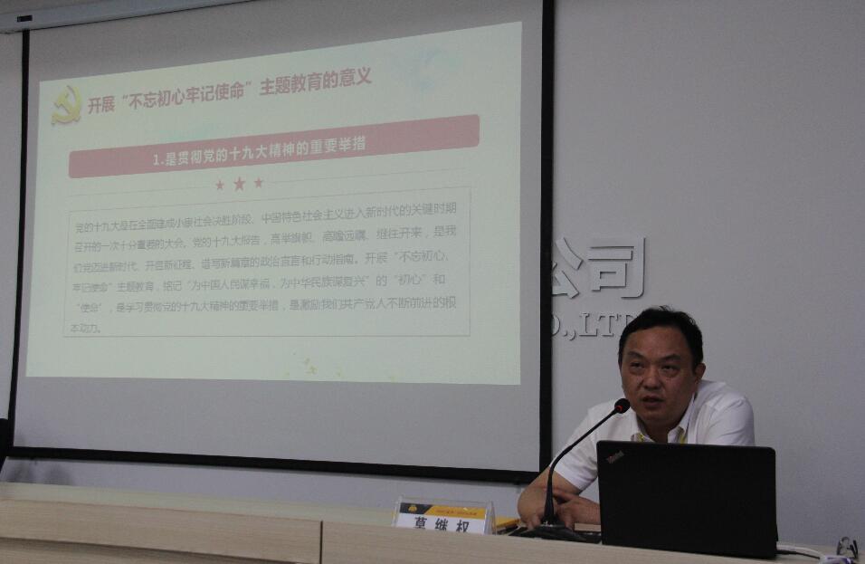 为深入学习贯彻落实习近平新时代中国特色社会主义思想,根据公司“不忘初心、牢记使命”主题教育工作任务安排,6月28日,湖州公司党委书记、董事长、总经理莫继权同志以《学习贯彻开展“不忘初心 牢记使命”主题教育》为主题,为2019年公司经理及主管级新任领导干部上了一堂生动的党课。