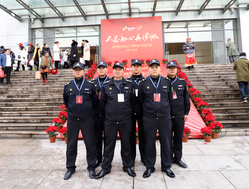12月16日,金华银行成立二十周年“不忘初心再扬帆”职工文艺汇演在浙江师范大学图文信息中心报告厅举行,1000多名干部职工代表观看了演出。应行方需求,由金华安邦承担此次活动现场安保任务。