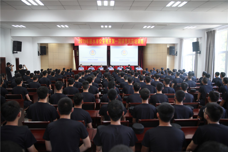 7月22日上午,2019年丽水市公安机关第一期辅警岗前培训班在丽水市民兵训练基地如期举行。市局教育训练处处长兼市警校校长丁俊雄、教育训练处政委兼市警校政委陈胤、教育训练处副处长兼市警校副校长周林剑、莲都分局党委委员、政治处主任王芳芳等相关领导出席开班仪式。