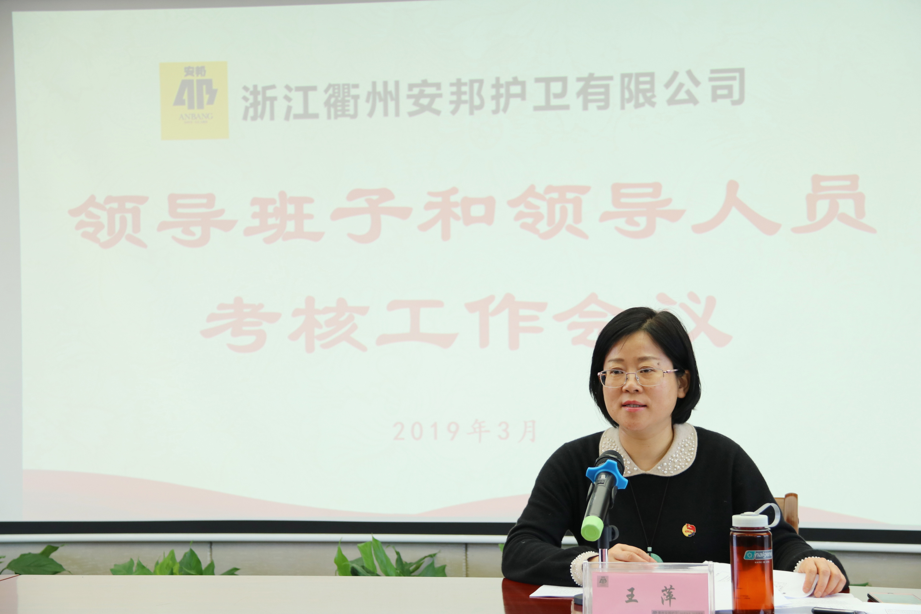 为进一步加强领导班子和干部队伍建设,3月26日上午,衢州安邦护卫召开2018年度领导班子和领导人员考核述职测评会。集团公司组织人事部部长王萍到会指导。公司党委班子、中层正副职及行政人员共44人参加会议,会议由公司党委书记、总经理张淑芬主持。