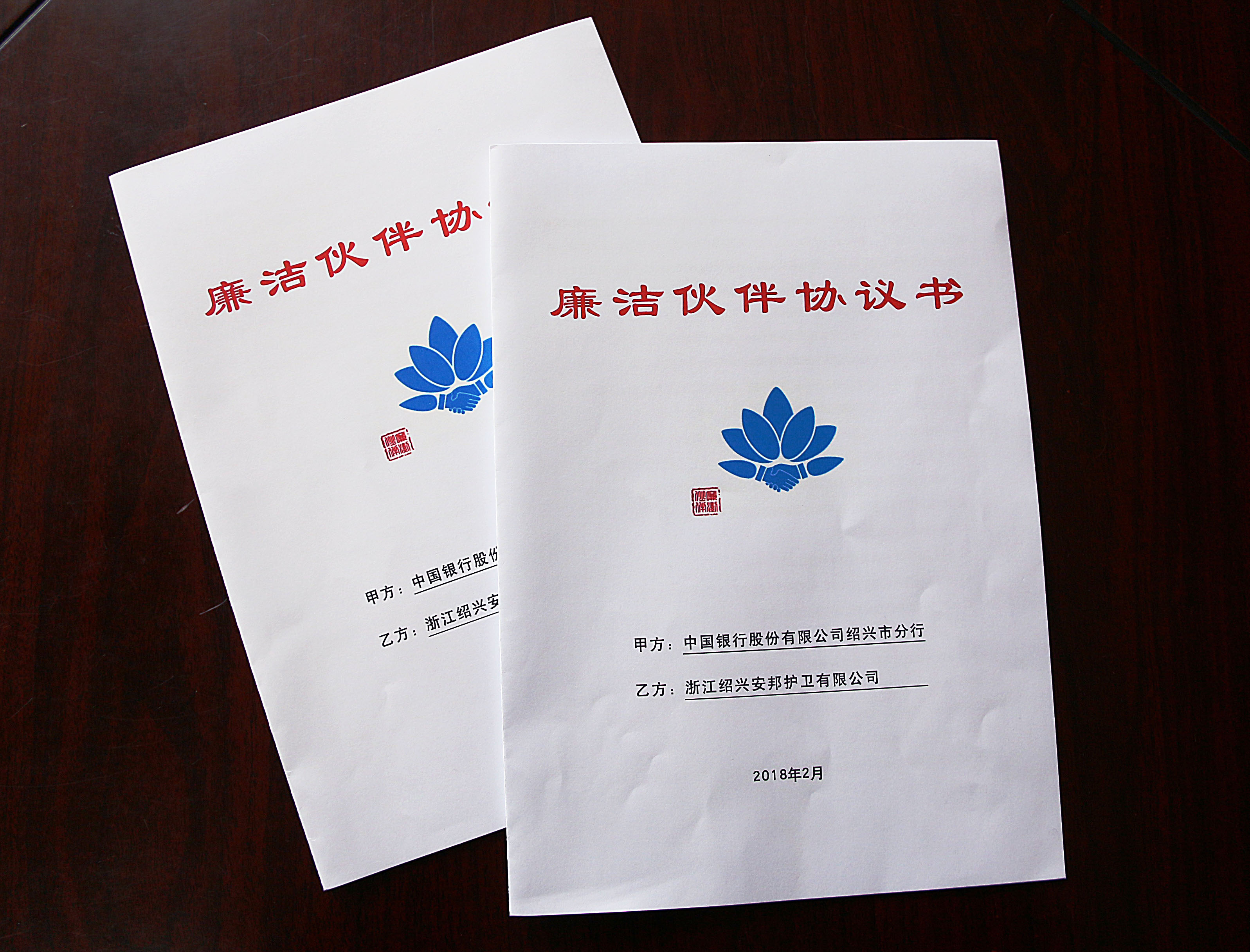 近日,中国银行绍兴市分行与浙江绍兴安邦护卫有限公司协商并签订了廉洁伙伴协议书。协议书旨在明确双方合作交往的行为准则,互相做出廉洁承诺。