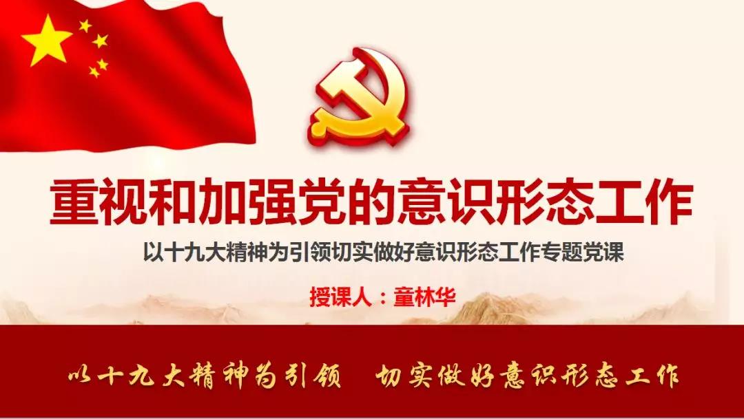 童林华同志以“十九大精神为引领,重视和加强党的意识形态工作”为主题,给参会人员讲了一堂专题党课。