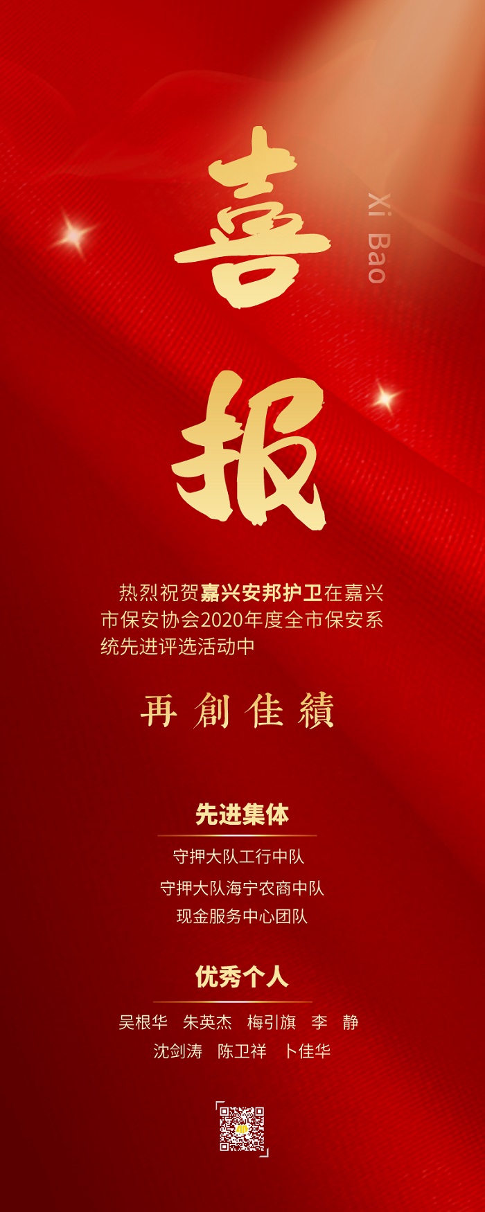 喜报 | 嘉兴安邦护卫这些先进集体和个人荣获表彰!