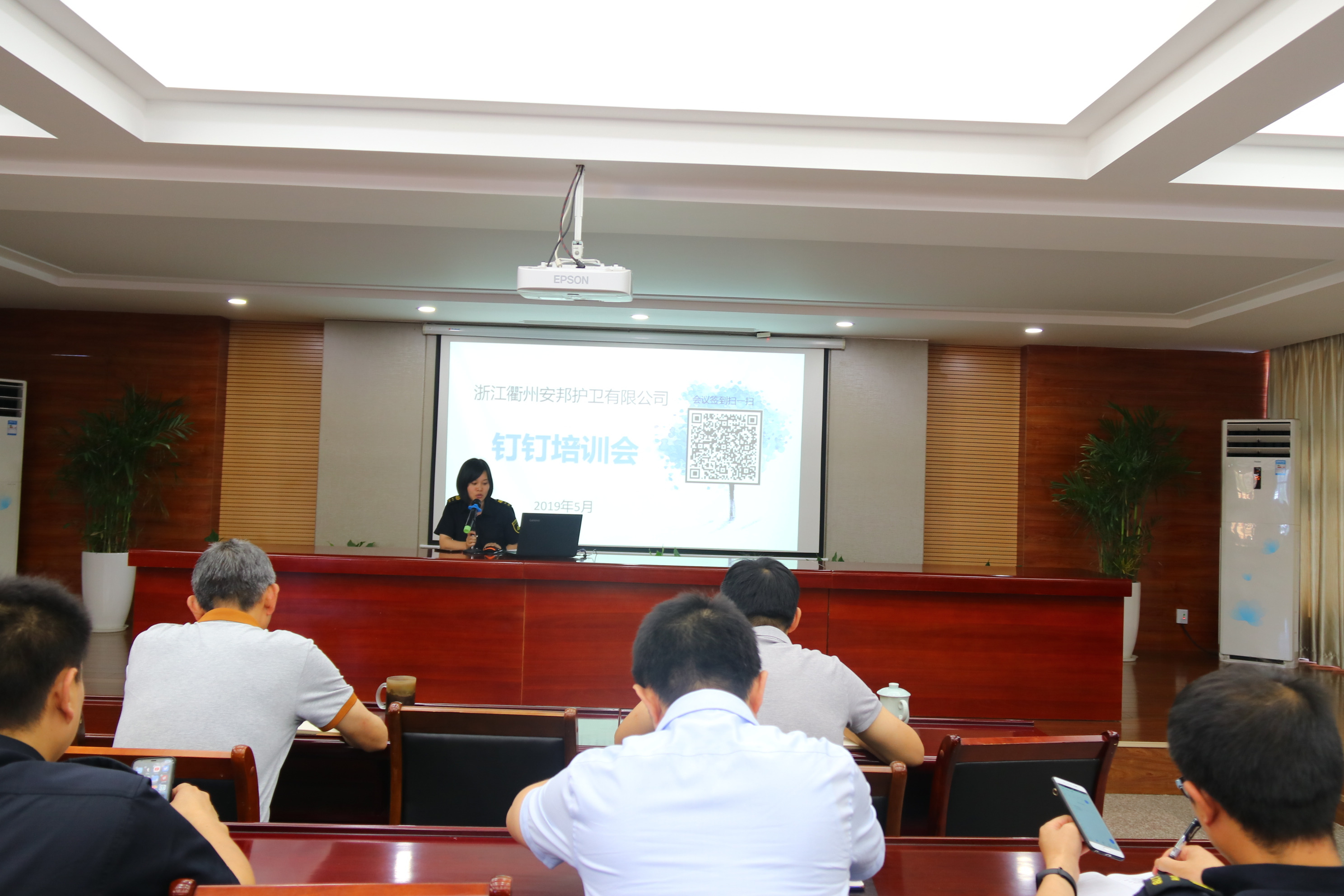 5月24日,浙江衢州安邦护卫有限公司开展“钉钉”培训会,公司党委班子、中层副职以上管理人员及综合、业务、技术管理序列全体员工参加。培训会由综合办公室人员主讲。
