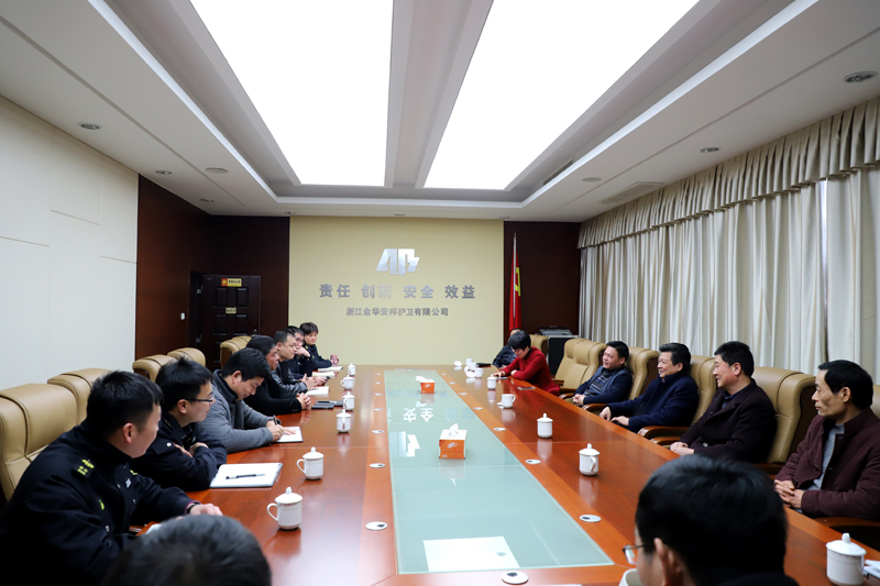 2月23日下午,金华市人大常委会副主任金中梁一行莅临金华安邦护卫公司视察慰问。公司党委书记、董事长、总经理方顺富,副总经理张红兵、潘晓斌及各部门主要负责人陪同。