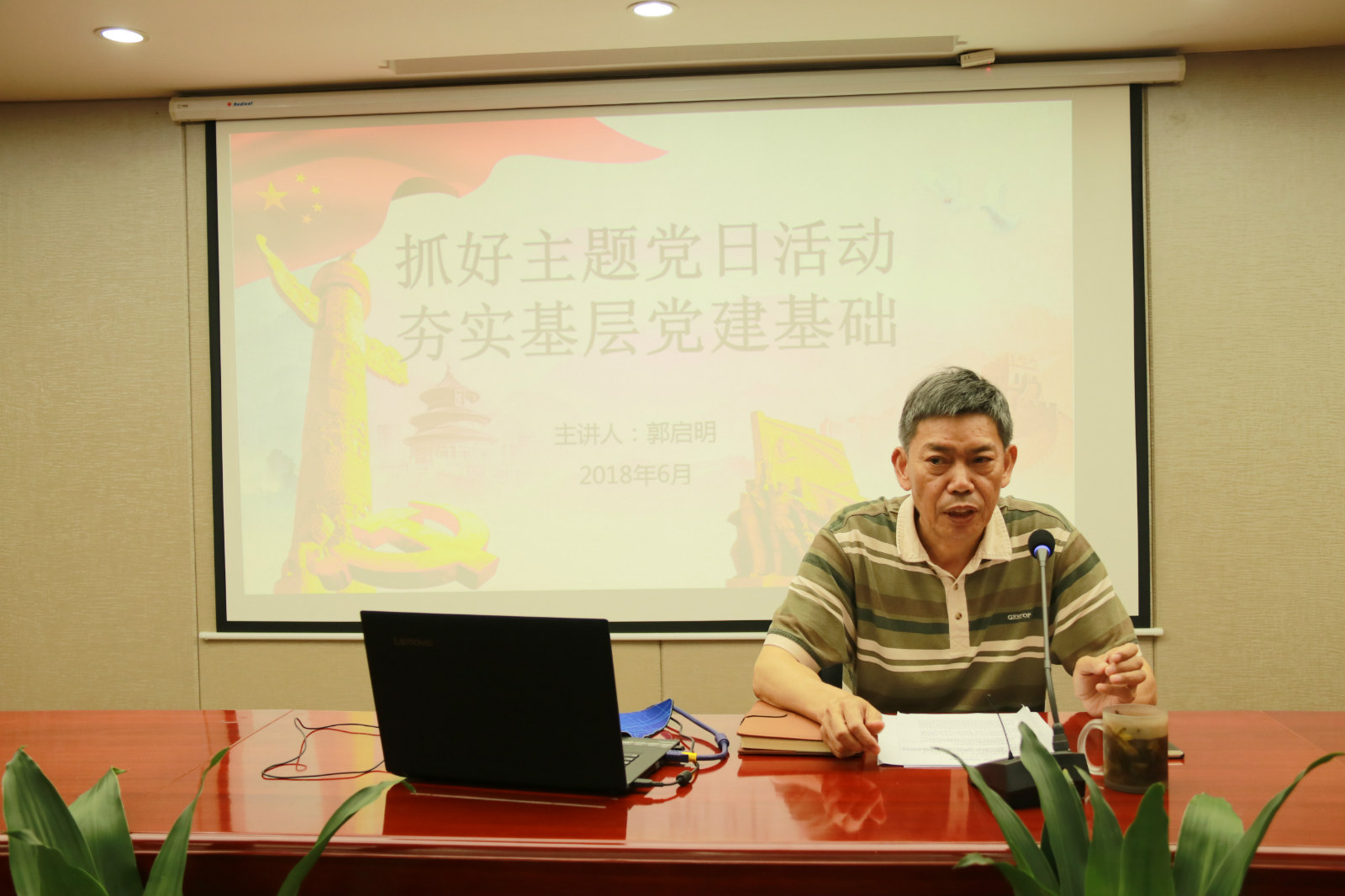会上,党委副书记、纪委书记郭启明同志以《抓好主题党日活动 夯实基层党建基础》为题,从主题党日的内涵、历史渊源、新时代主题党日的意义等方面着手,指出了目前公司各支部开展主题党日活动存在的“主题不鲜明”、“主题活动异化”等问题,为支部下阶段主题党日活动的开展开了一剂“良方”。